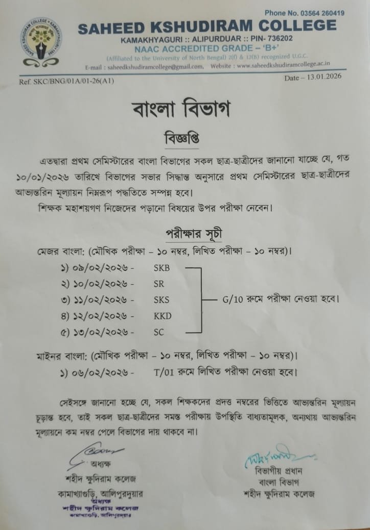 Bengali Dept. Internal Exam Notice