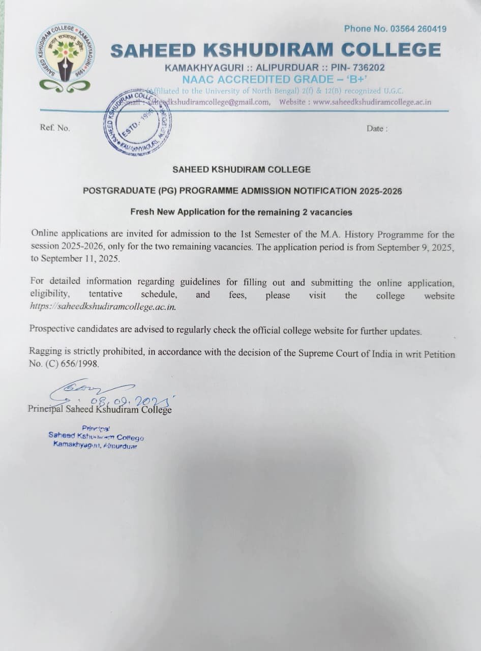 Notice Regarding PG History Seat Vacant